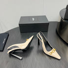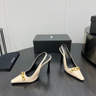 GOLD CHAIN ATTACHED HIGH SLINGBACK IN CREAM GLOSSY CALFSKIN