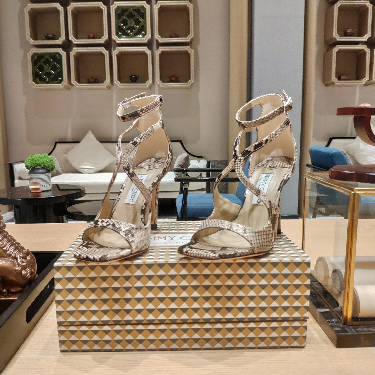 Jimmy 25 Azia 95 Beige Snakeskin Pattern Lambskin 240078