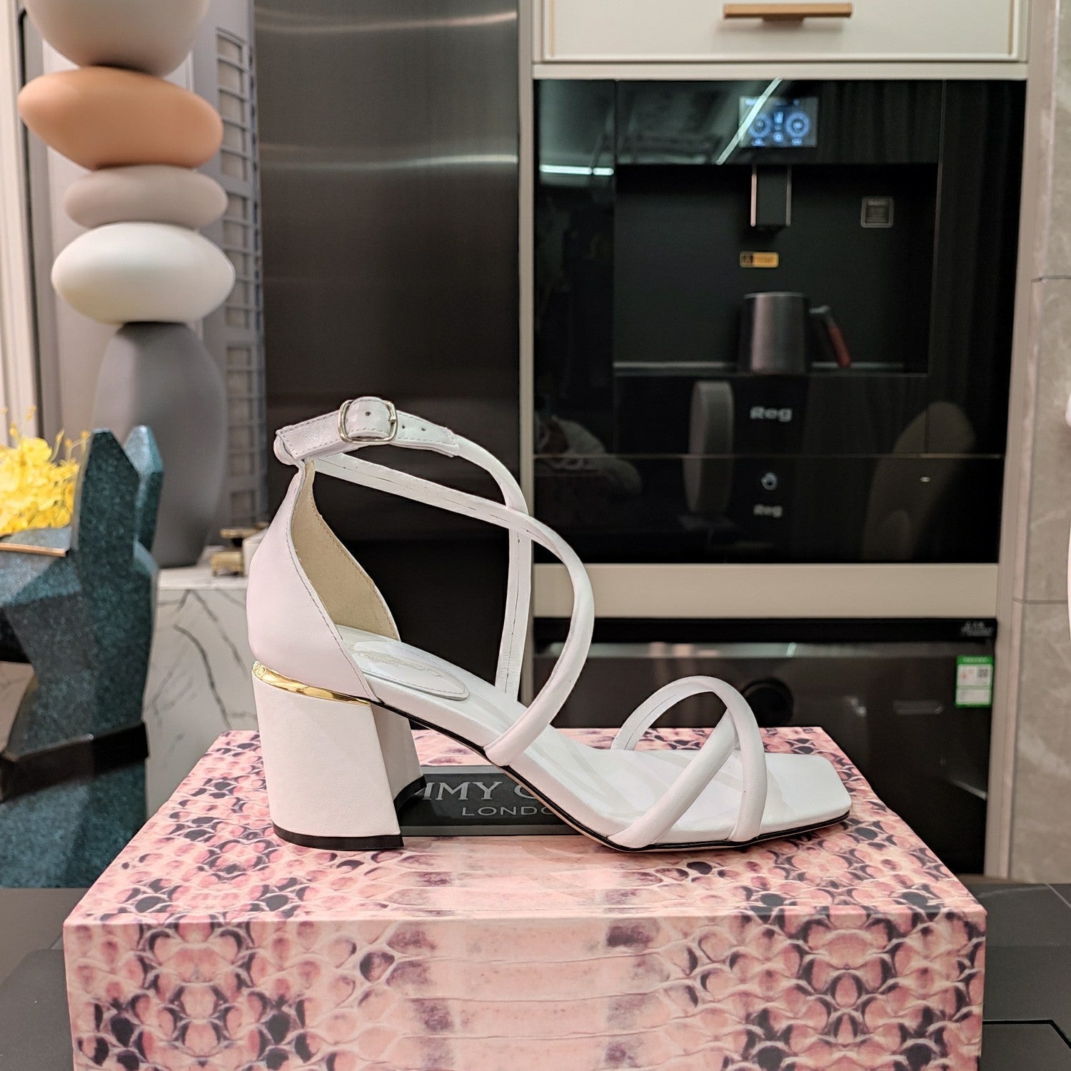 Jimmy 25 Sandal Heels White Cowhide 240087