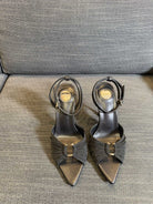 LOLA HIGH SANDALS IN BLACK SMOOTH LAMBSKIN AND DRAPED JERSEY