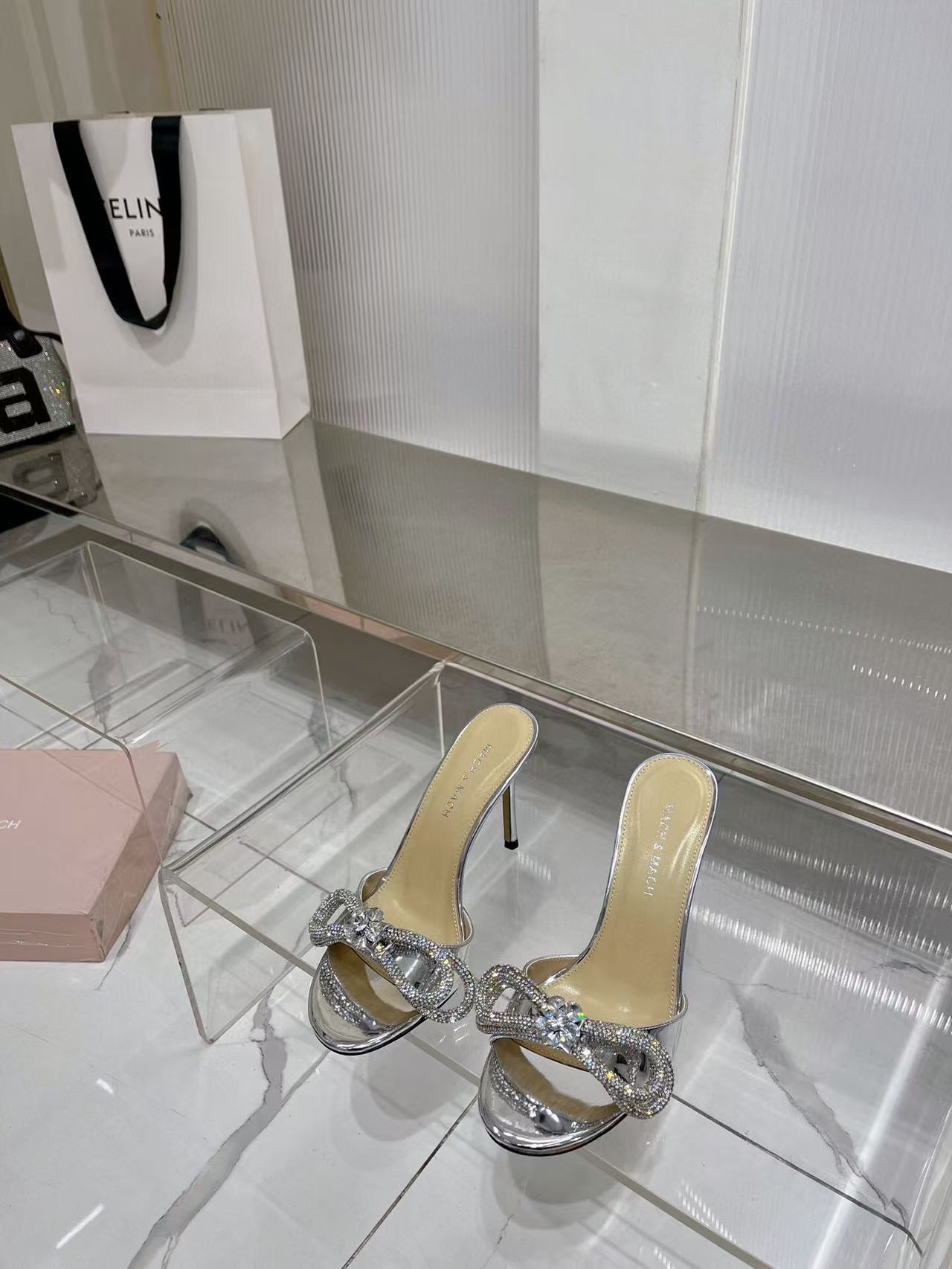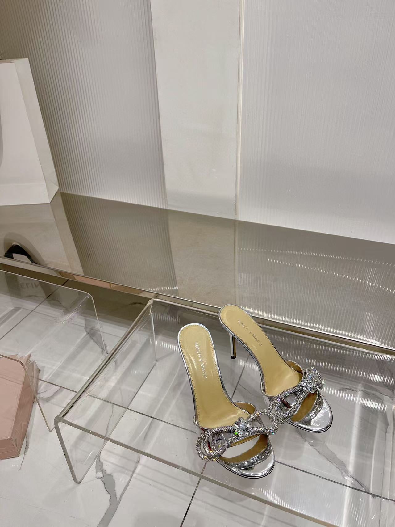 Mach & Mach Double Bow Metallic Mules 65mm Silver calfskin
