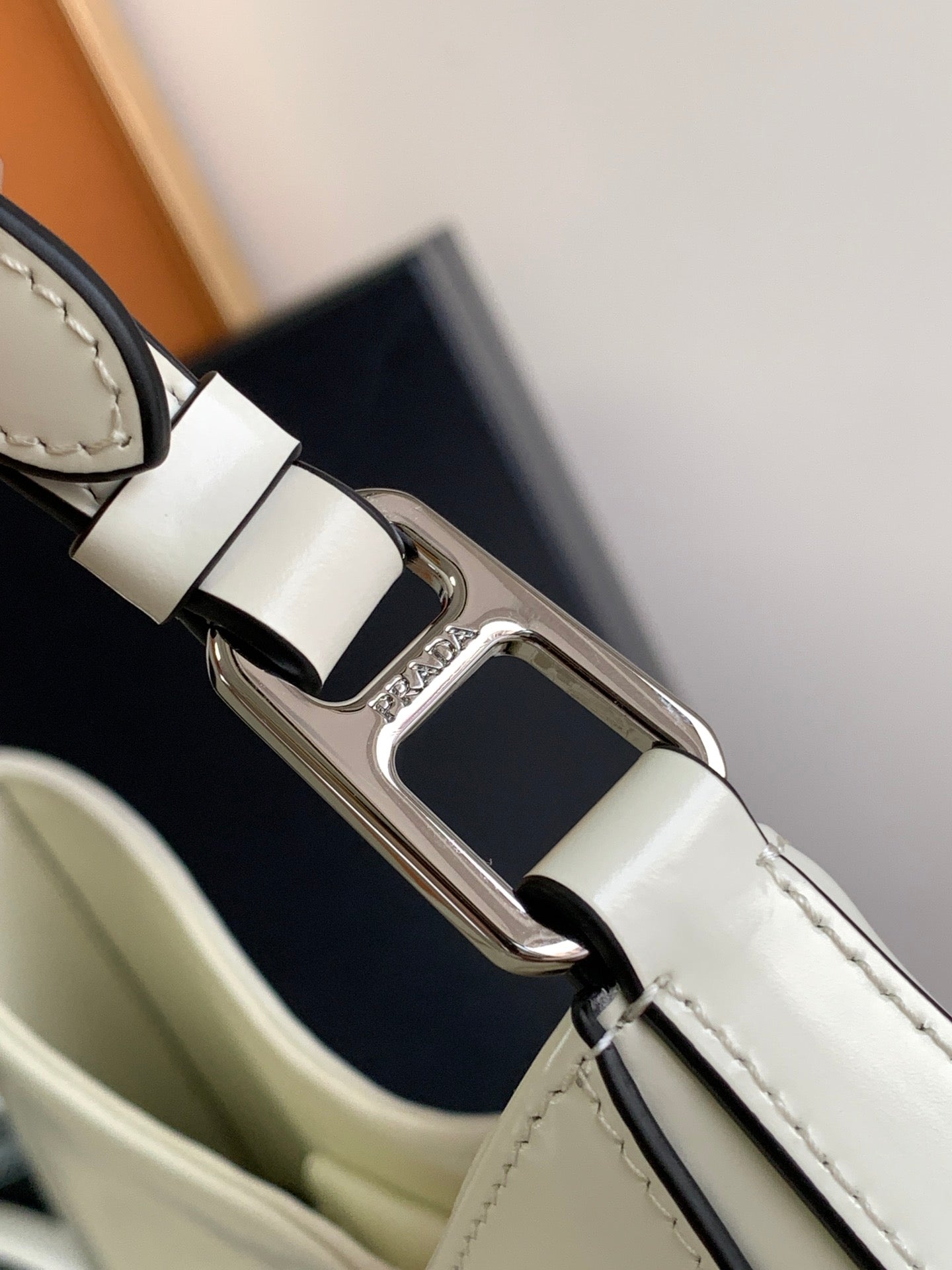 CLEO 30 WHITE BLACK BRUSHED LEATHER SHOULDER BAG