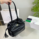 DRAWSTRING BUCKET BAG 25 IN BLACK SOFT LAMBSKIN