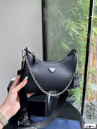 PRA 22 BAG IN BLACK SATIN WITH RHINSTONE SILVER HARDWARE