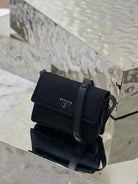 PRA CINI 23 MEDIUM BAG IN BLACK RE-NYLON WITH STRAP