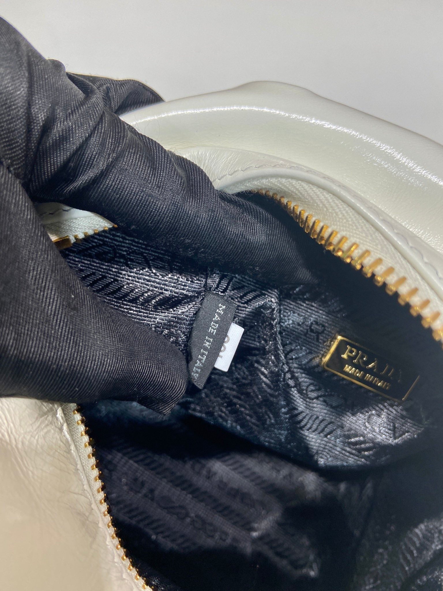 SMALL RECTANGULAR BAG 14 IN WHITE OIL WAX LAMBSKIN GOLD HARDWARE