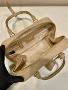 SMALL TOP HANDLE BAG 25 IN DRIED MOSS NYLON AND CALFSKIN TRIM