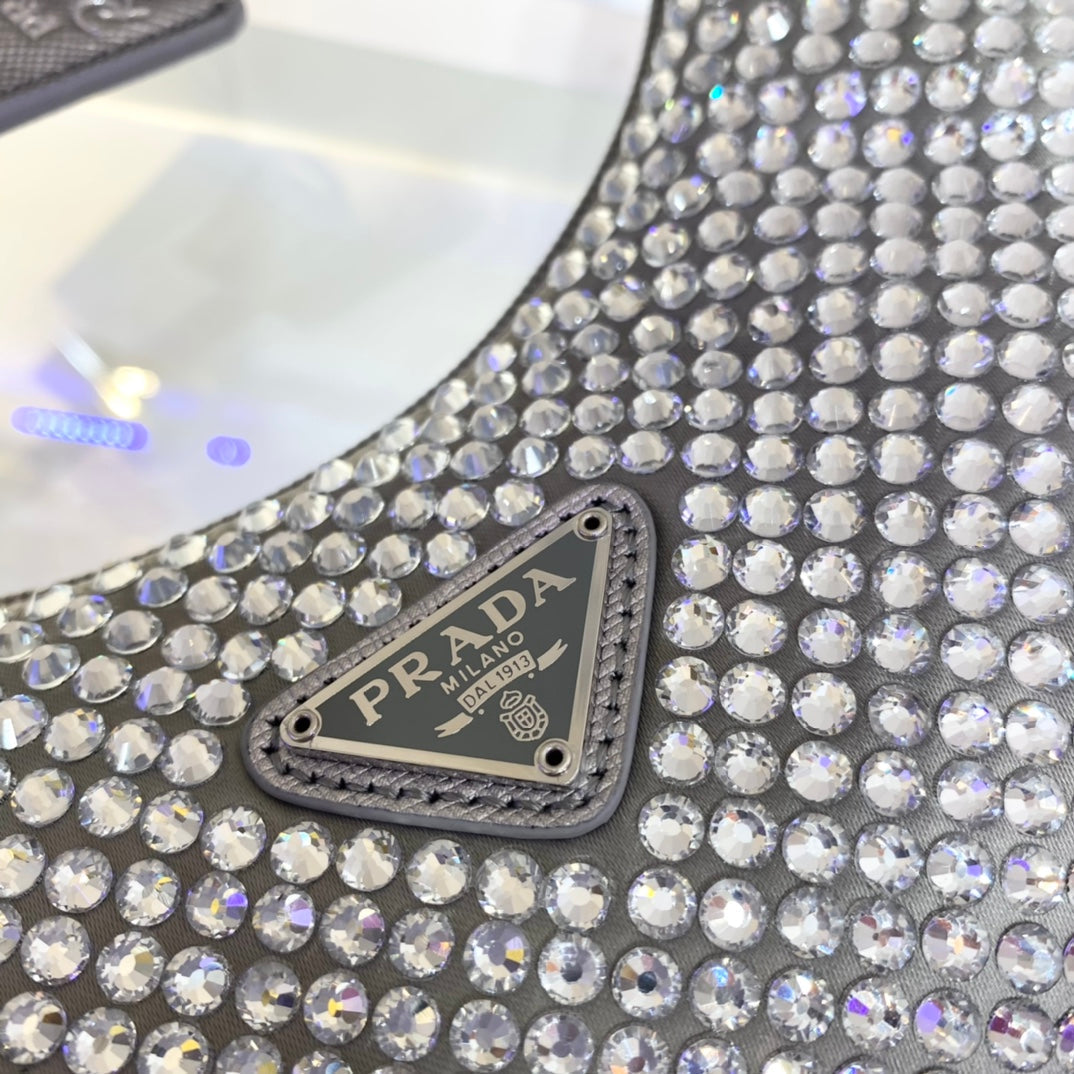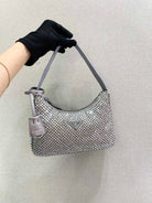 SPARKLING HOBO BAG 23 IN SILVER NYLON ATTACHED FULLY CRYSTALS
