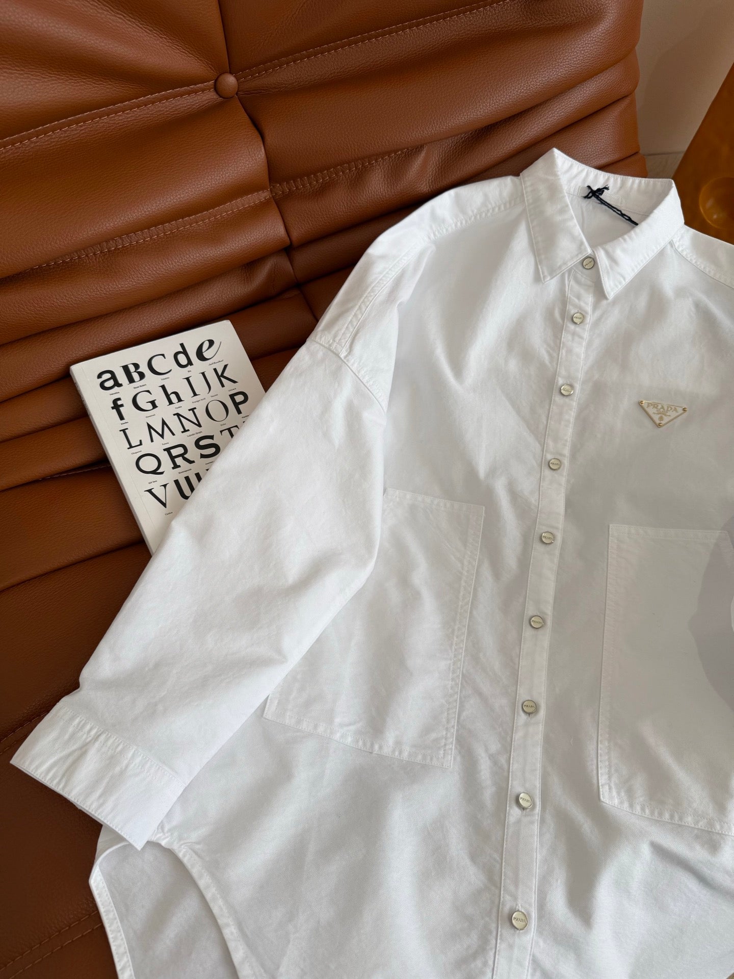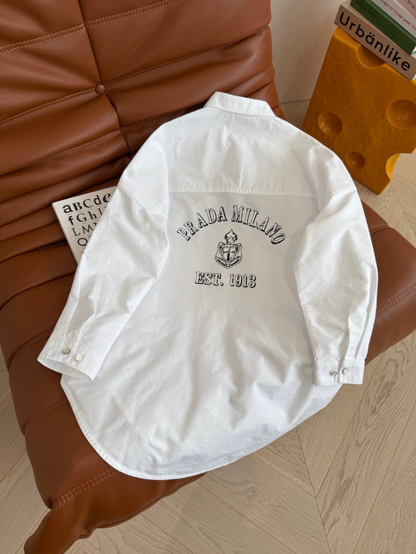Prada 25 Long Sleeve Shirt With Triangle Logo White Cotton