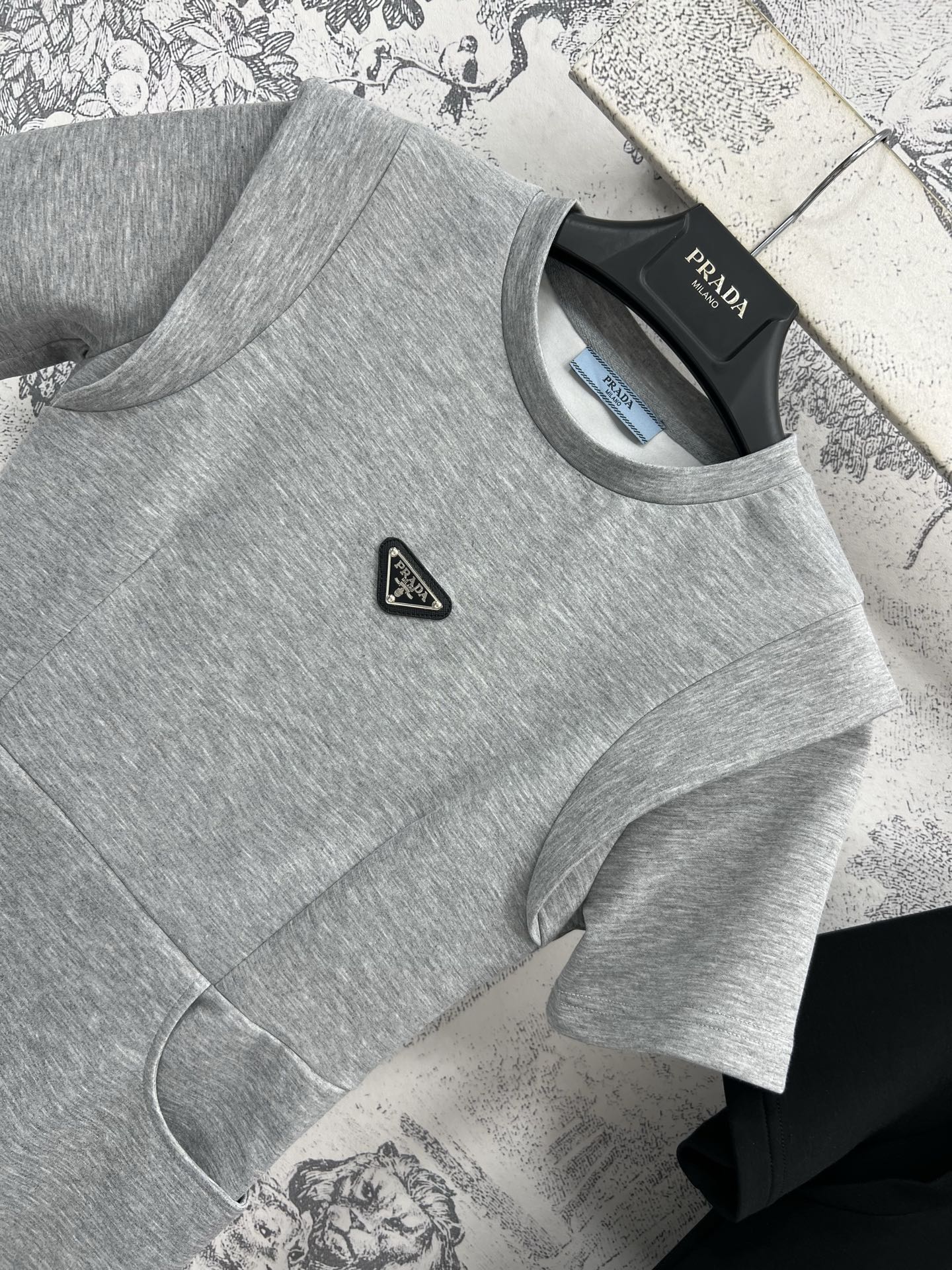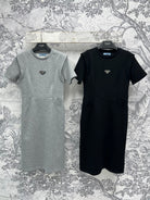 Prada 25 Short-sleeved Dress Black and Gray Cotton