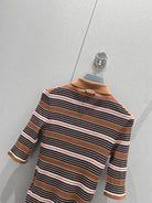 Prada 25 Striped Knitted Polo Short-sleeved Top Brown mix Black Cotton Poliamide 217945