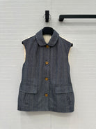 Prada 25 Striped Vest Jacket Grey Wool Cotton Polyester