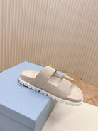 Double Buckle Strap Slides 20 Light Grey Suede