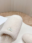 MULES ATTACHED TRIANGLE LOGO IN WHITE SHEARLING