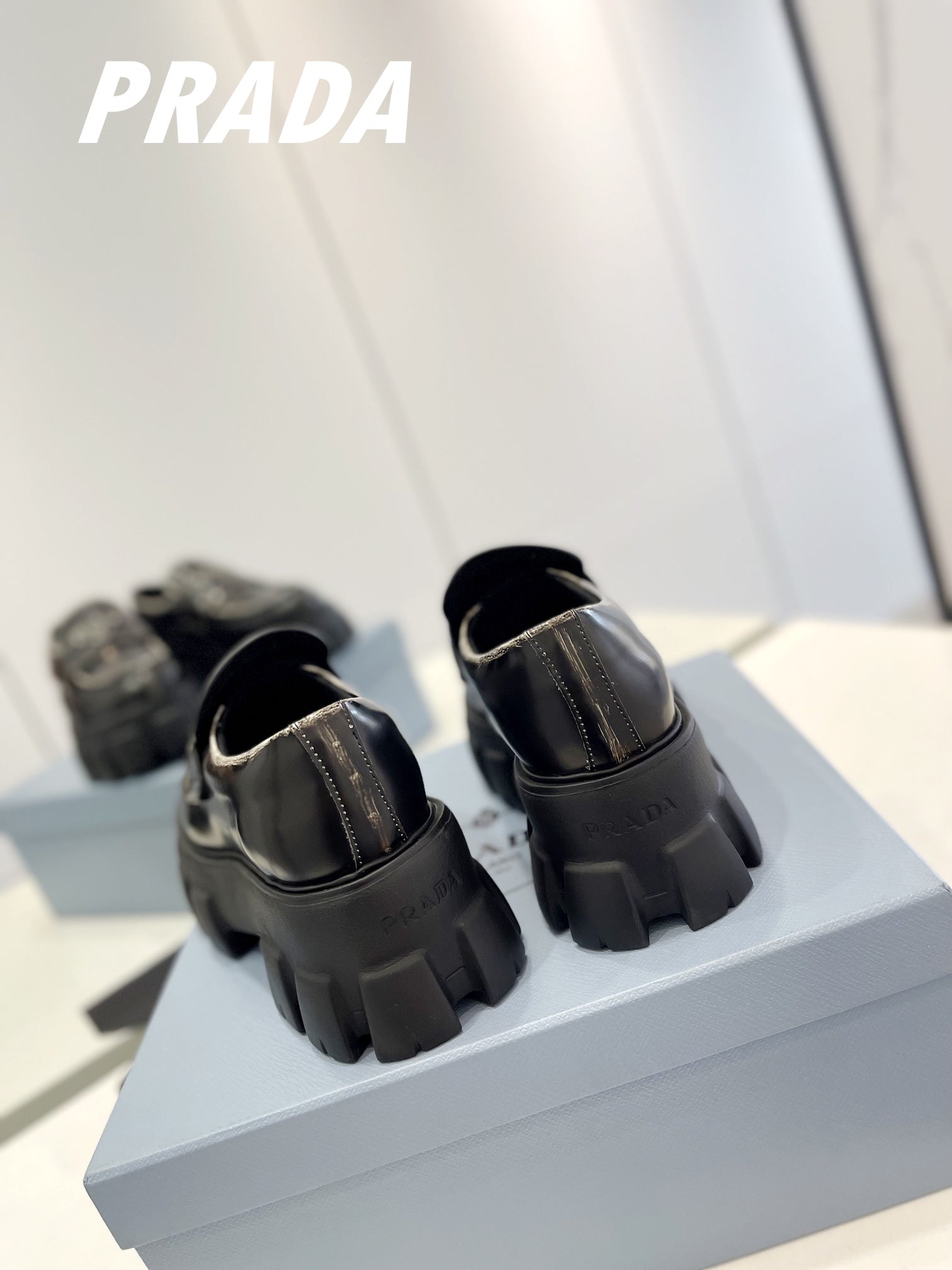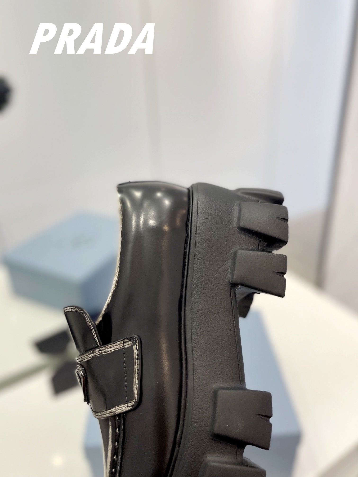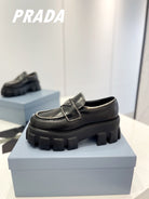 PRA BRUSHED LEATHER MONOLITH LOAFERS BLACK-SILVER BORDER