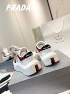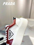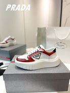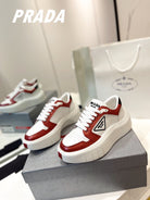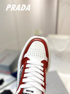 PRA DOWNTOWN THICK-SOLE SNEAKERS WHITE AND CHERRY CALFSKIN