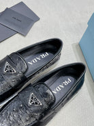 PRA OSTRICH PATTERN LOAFERS BLACK CALFSKIN