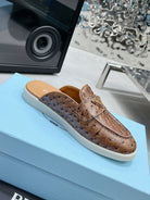 PRA OSTRICH PATTERN MULES CARAMEL CALFSKIN