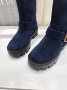 Prada 25 Boot Navy Blue Black Cowhide Suede 491869