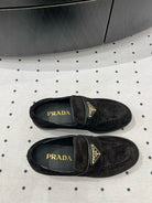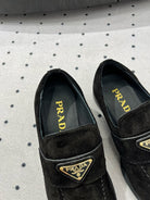 TRIANGLE LOGO LOAFER IN BLACK SUEDE