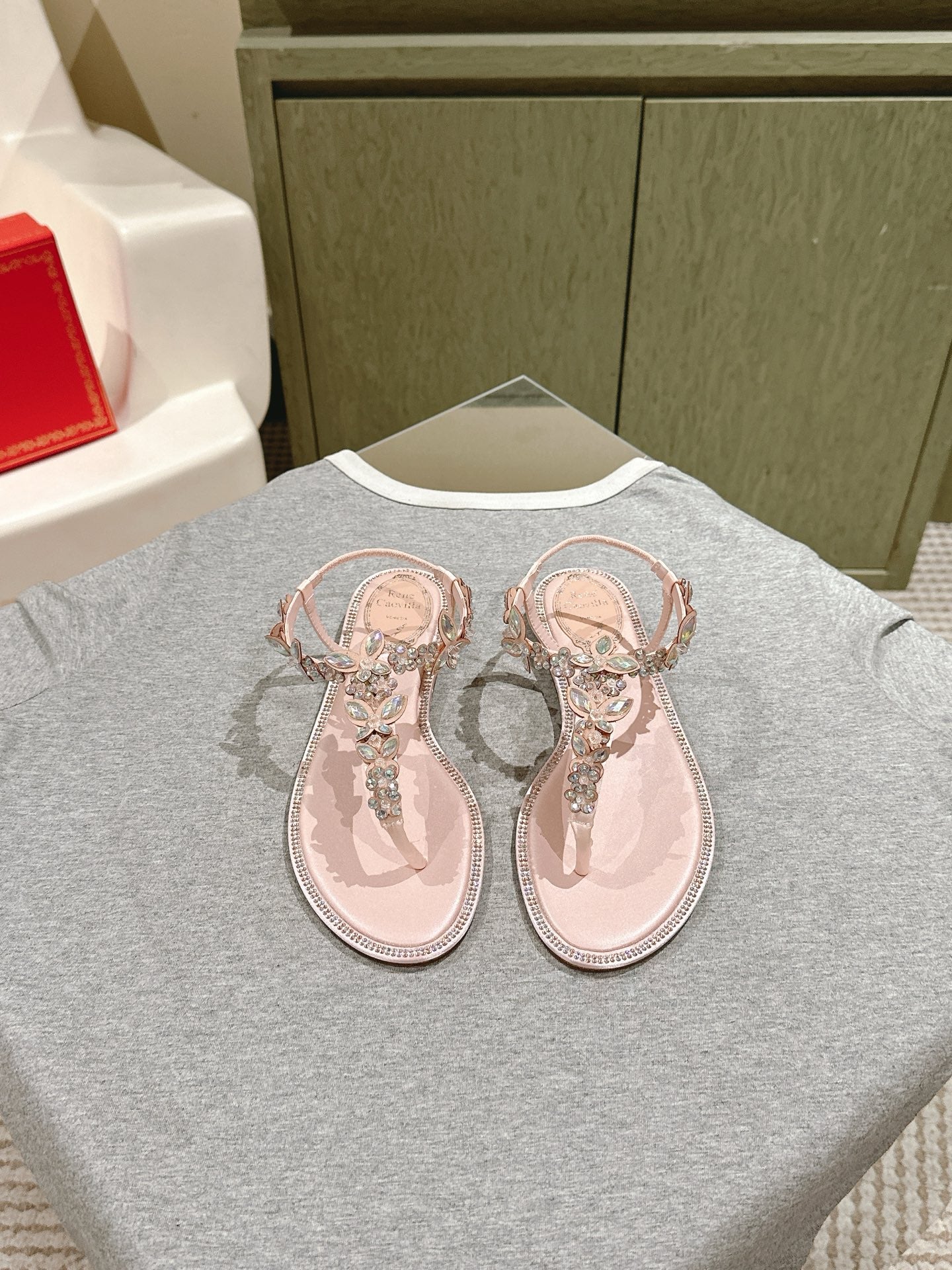 RC 25 Thong Snake-Shaped Popular Fairy Sandals Pink Silk Rhinestones 268064