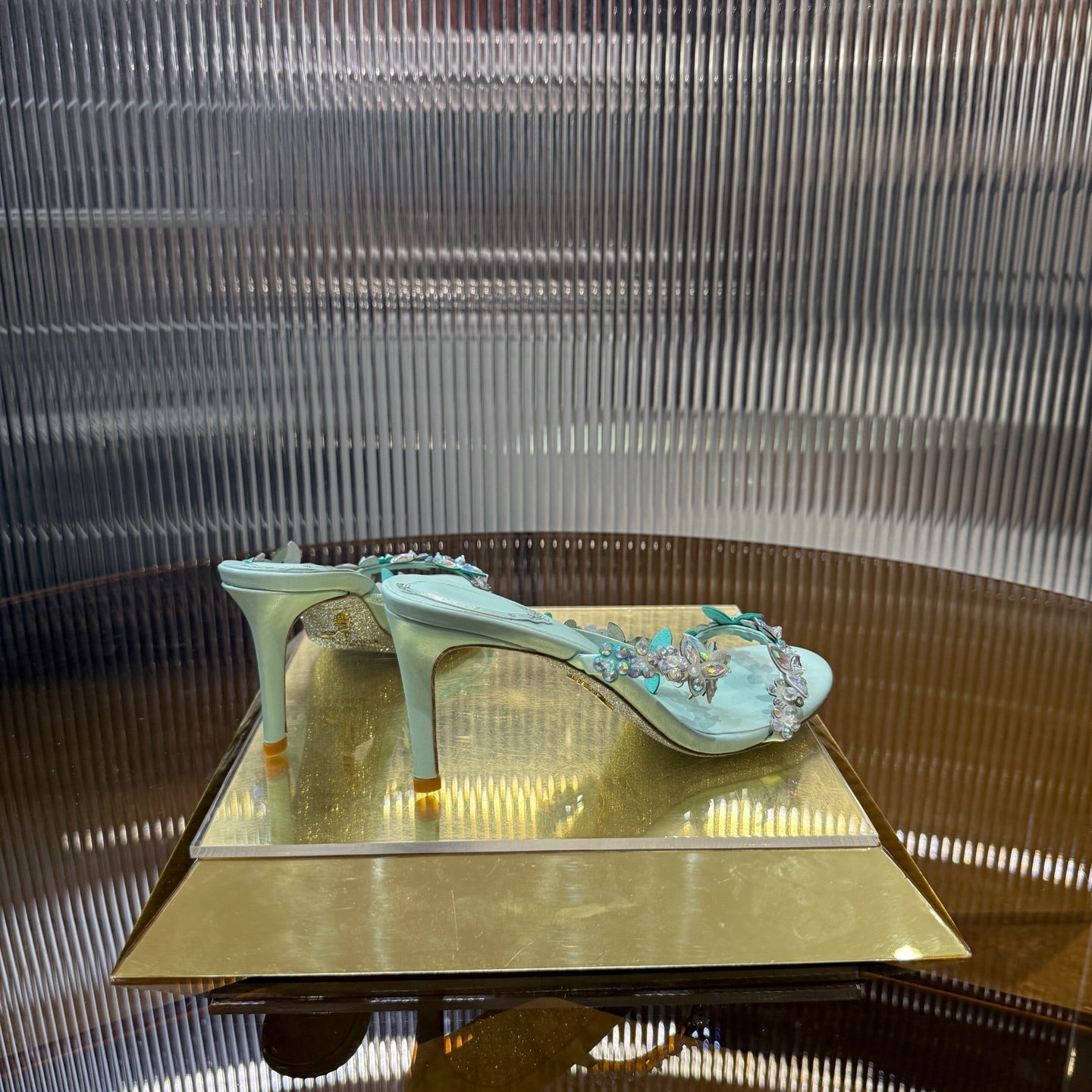 RC 25C Butterfly Flower Slippers Green Sheepskin Rhinestones 310657