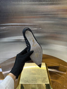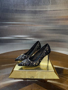 RC 25C Crystal Pearl Gem Lace High Heels Black Sheepskin 275754