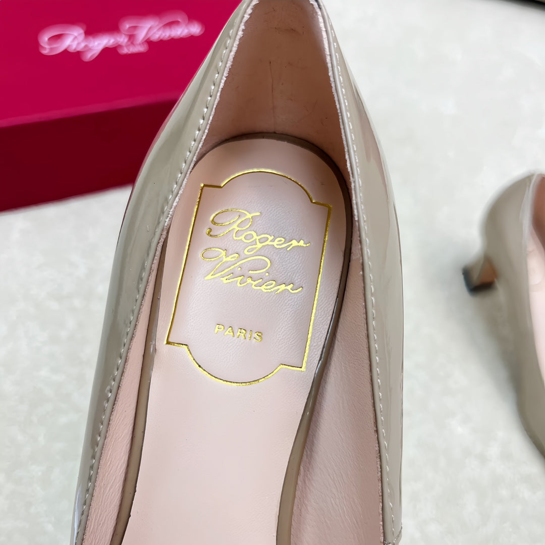Belle Viv Edition Metal Buckle Pumps 65 Camel Patent Leather