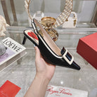 Belle Viv Metal Buckle Slingback Pumps 65 Black White Patent Leather