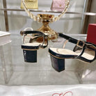 Viv 25 Slingback Navy Blue Mesh Italian Leather 300781