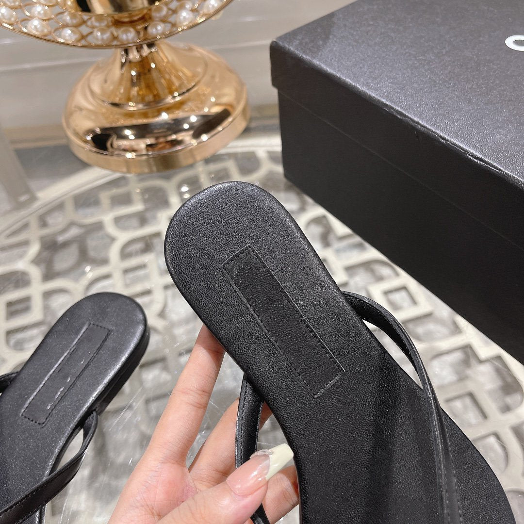 cc thongs black silver calfskin