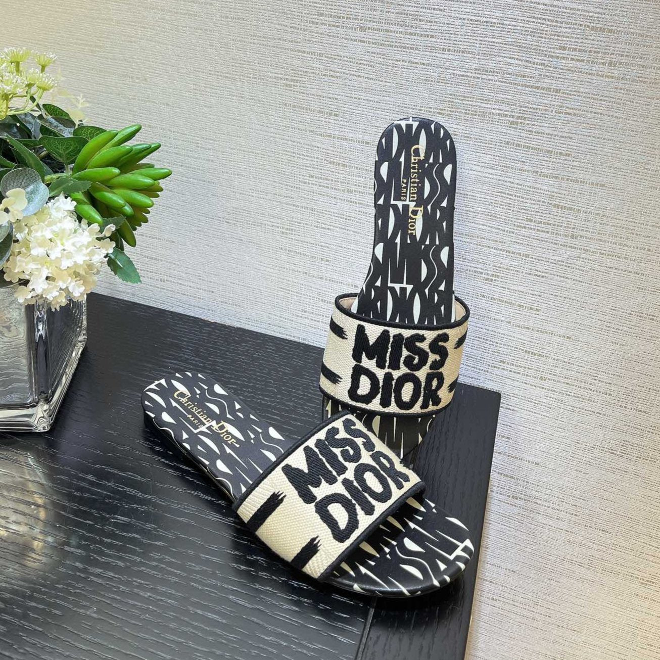 dway slide embroidered cotton black miss cd alllover motif