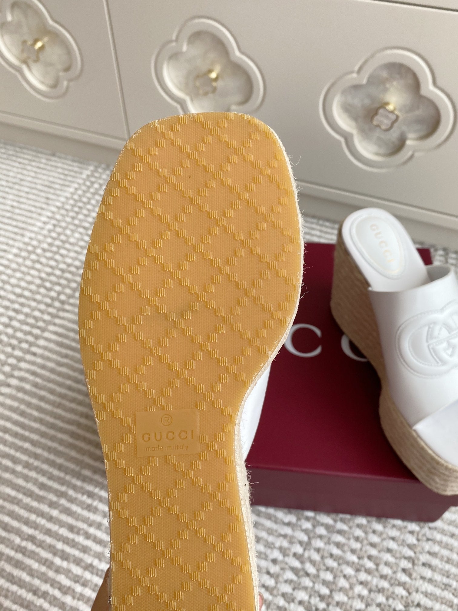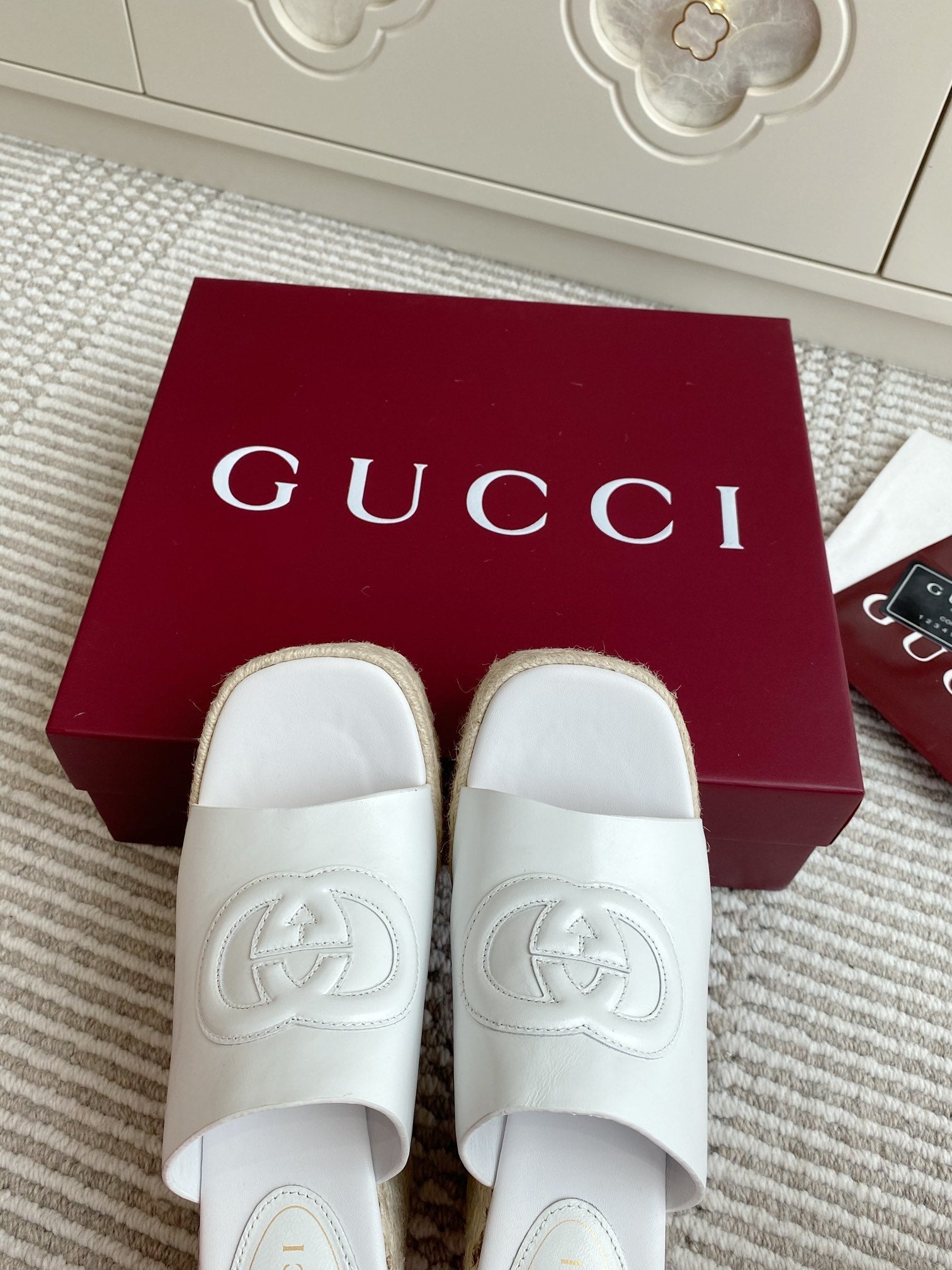 GC 25 Interlocking G Sandal White Cord Cowhide 291034