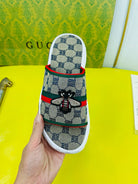 GG Men's Bee Slide Brown Gingham Fabric 538693
