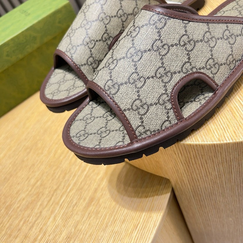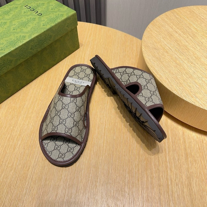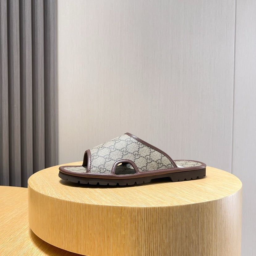 GG Men's Slide Brown Printed Fabric 544369