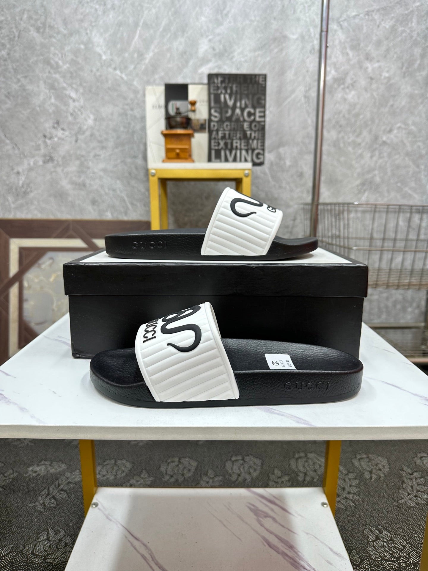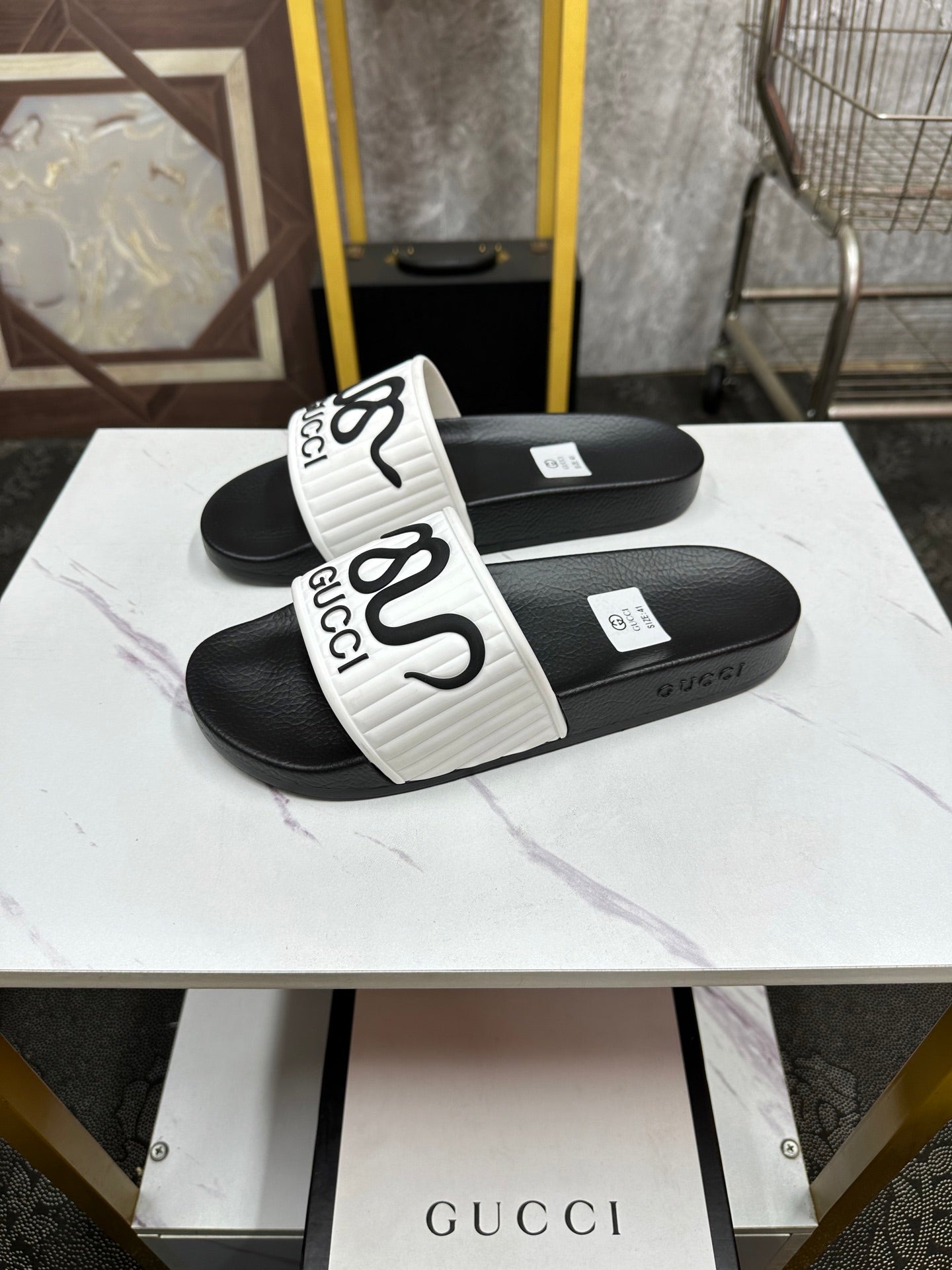 GG Men's Slide White Sheepskin Rubber 540097