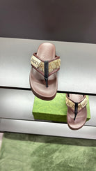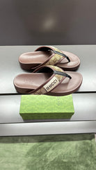GG Men's Thong Sandals Brown Polyester Leather 547249