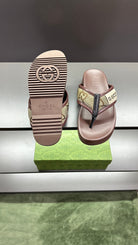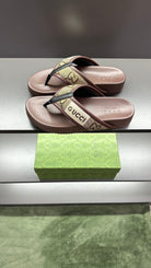 GG Men's Thong Sandals Brown Polyester Leather 547251