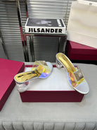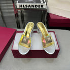 Heeled Sandals 6cm with Crystal Square Buckle Gold and Silver