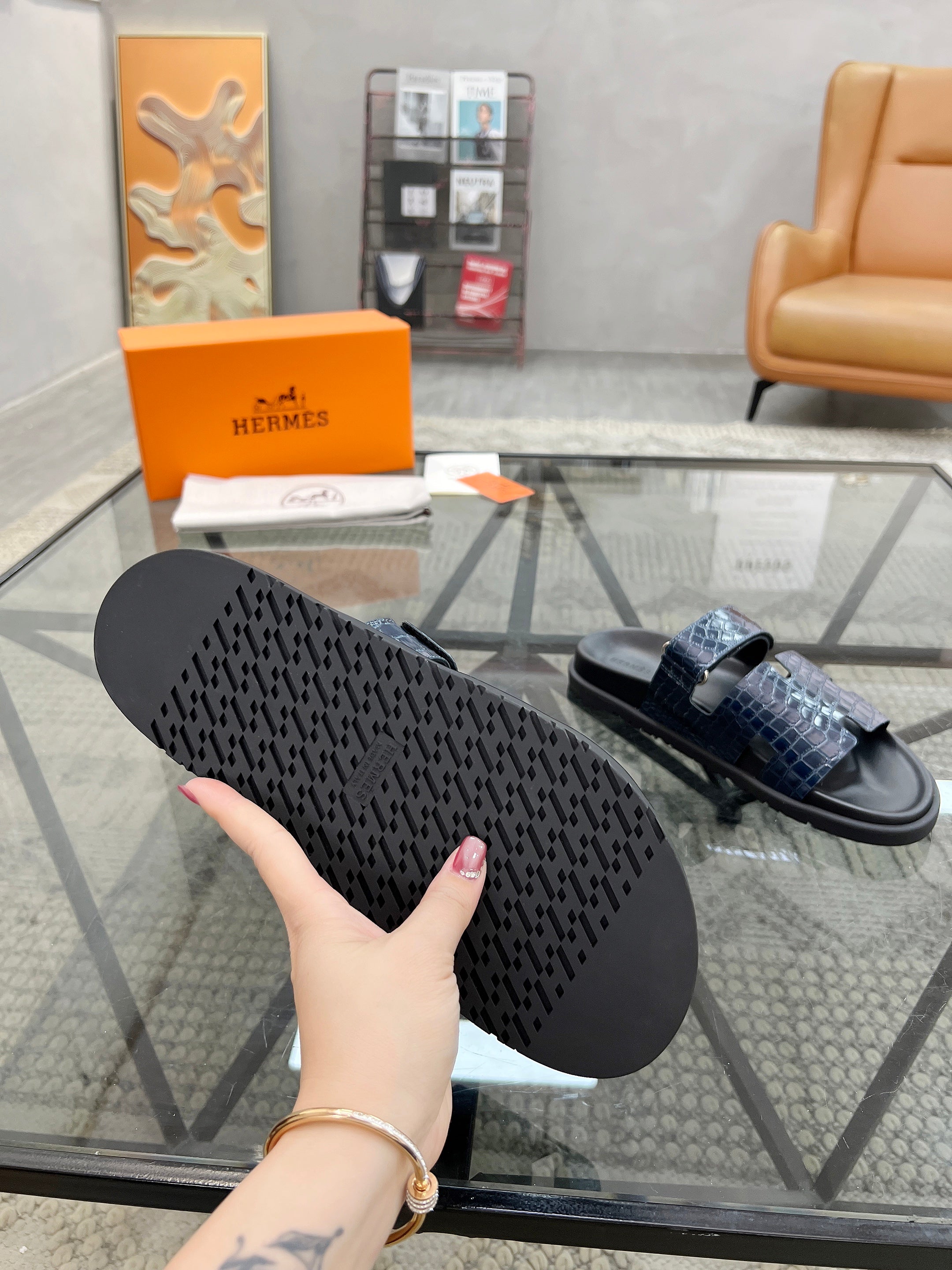 HM Men's Chypre Slide Navy Blue Cowhide 544583