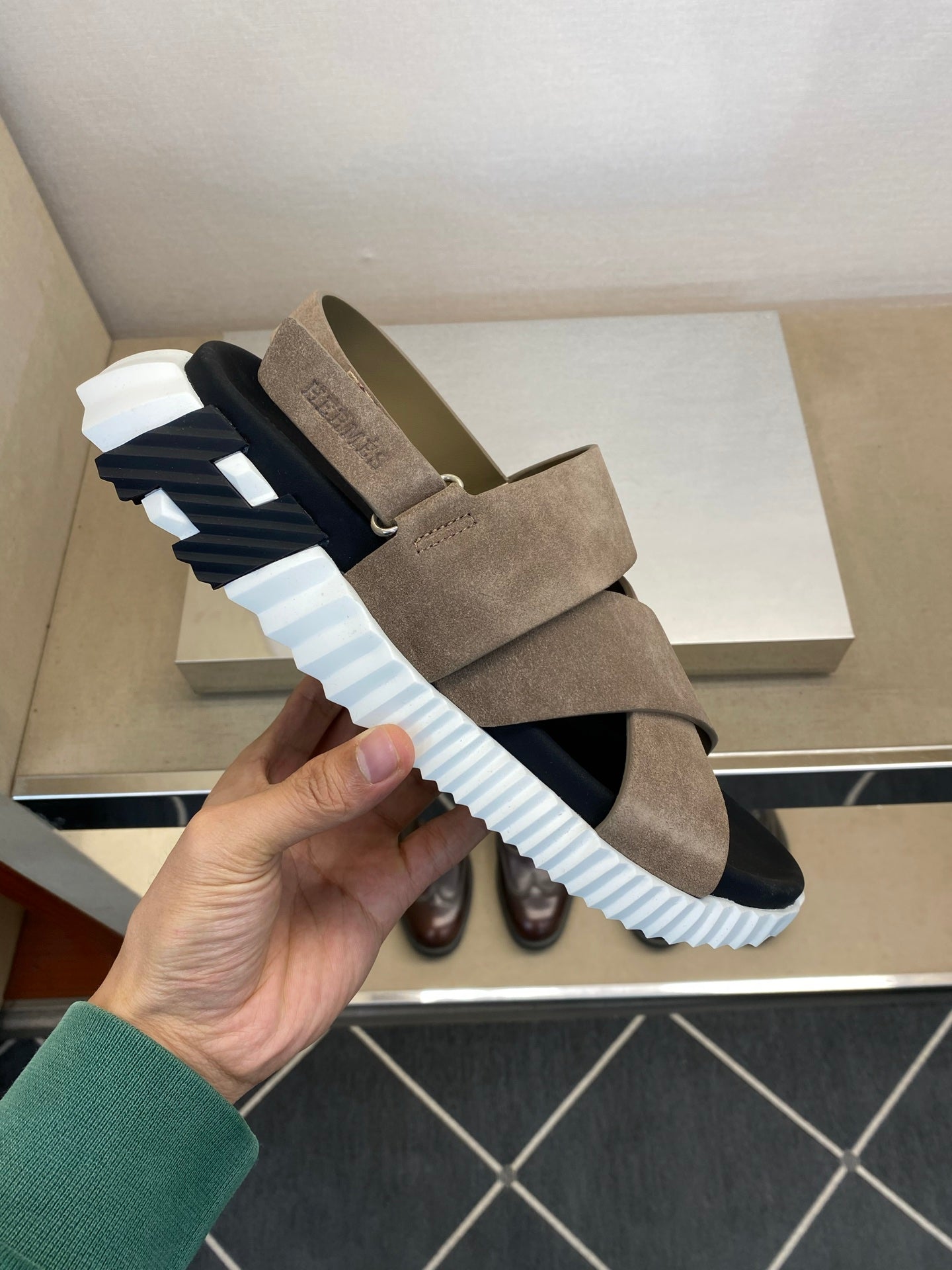 HM Men's Electric Sandals Beige Suede 602593