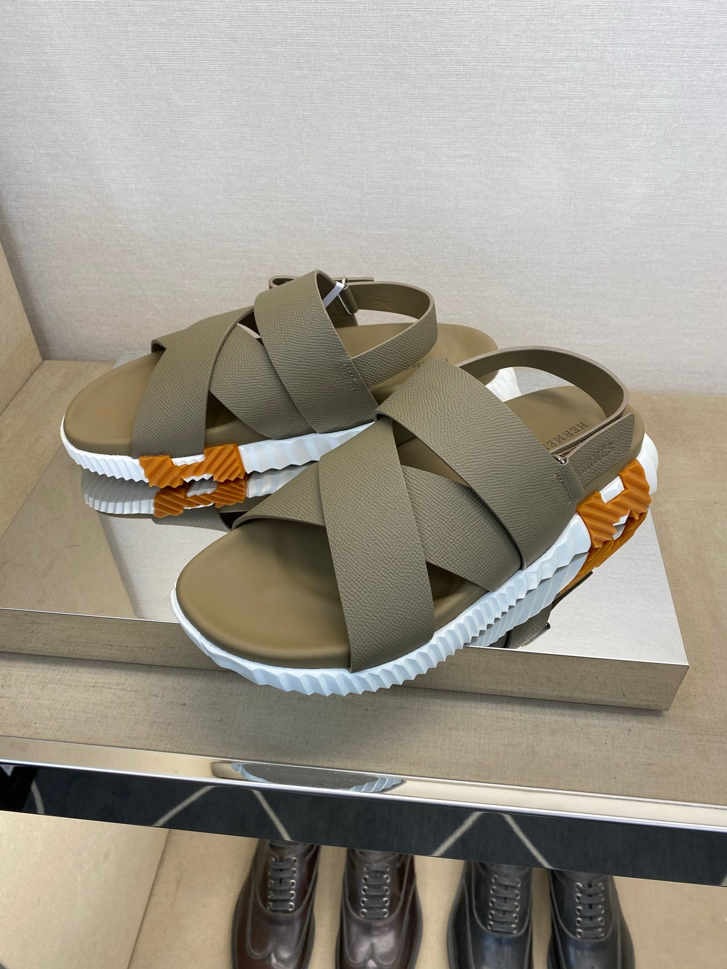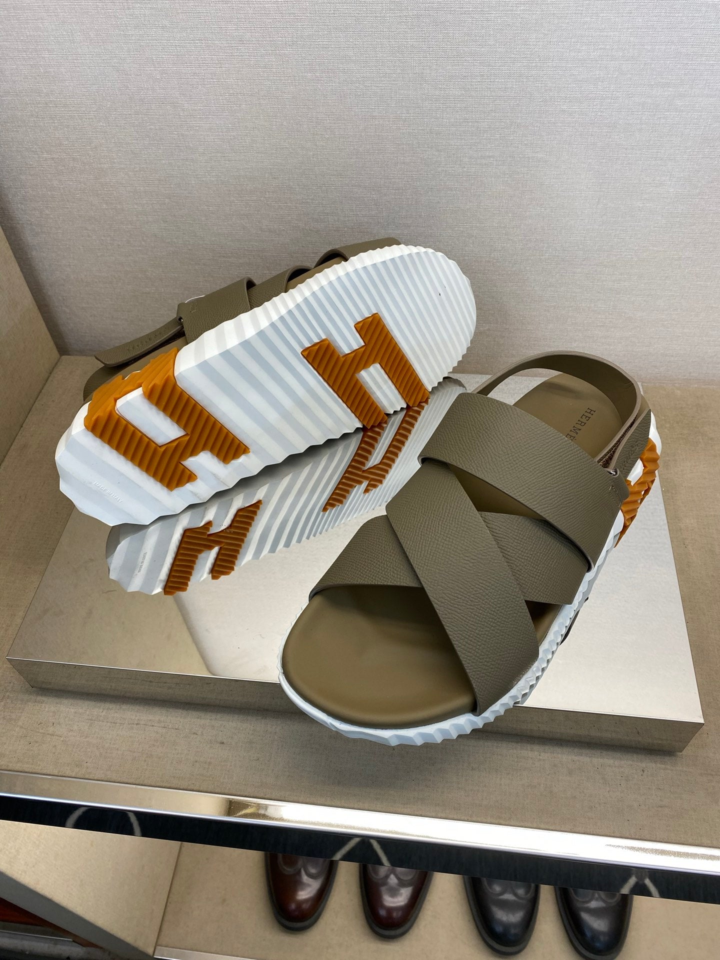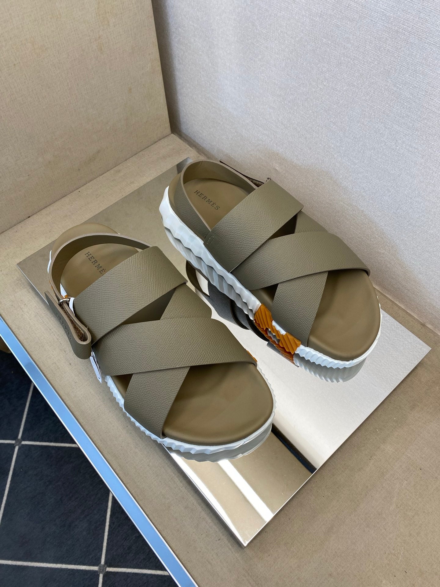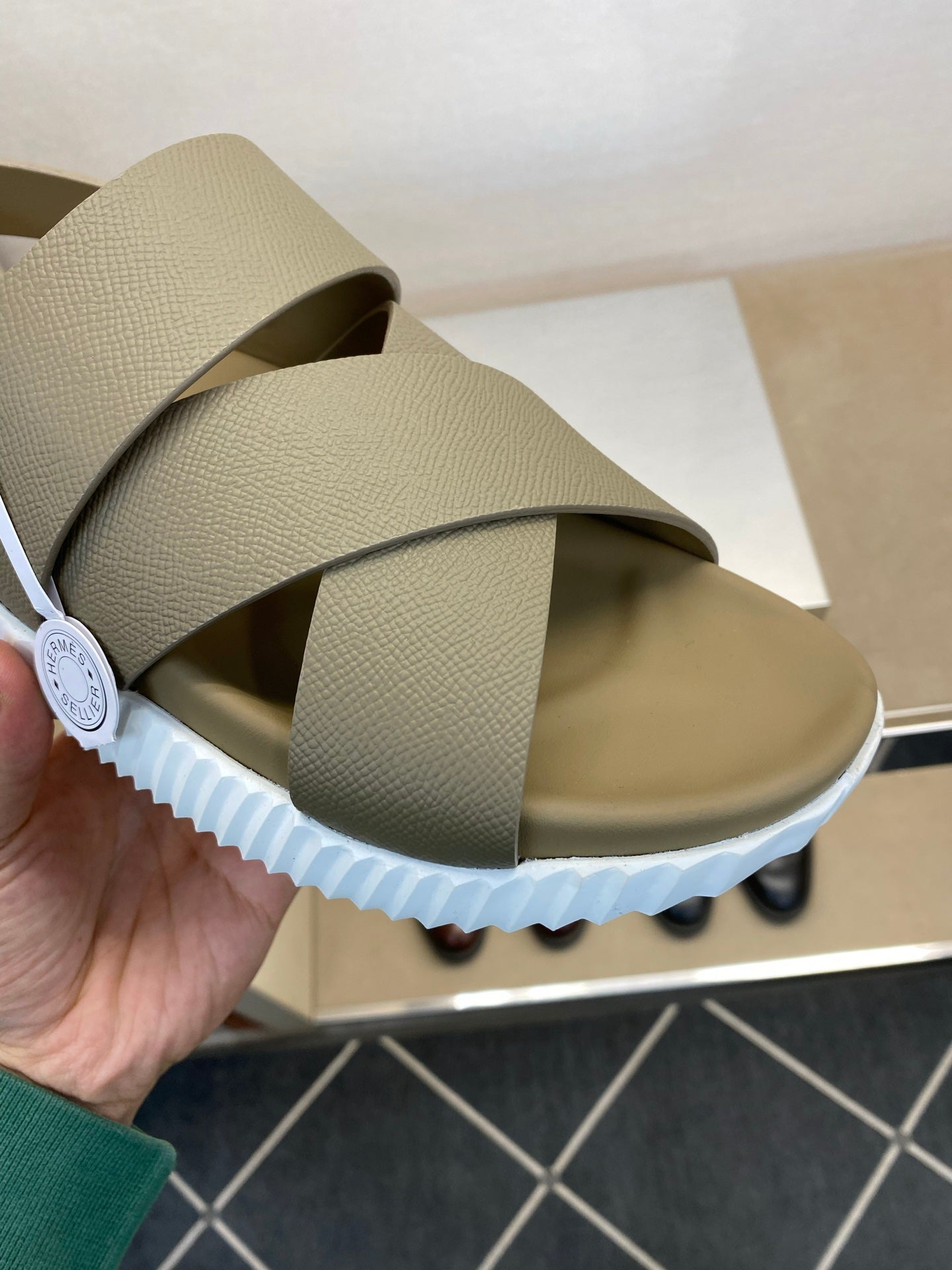 HM Men's Electric Sandals Moss Green Calfskin 602595