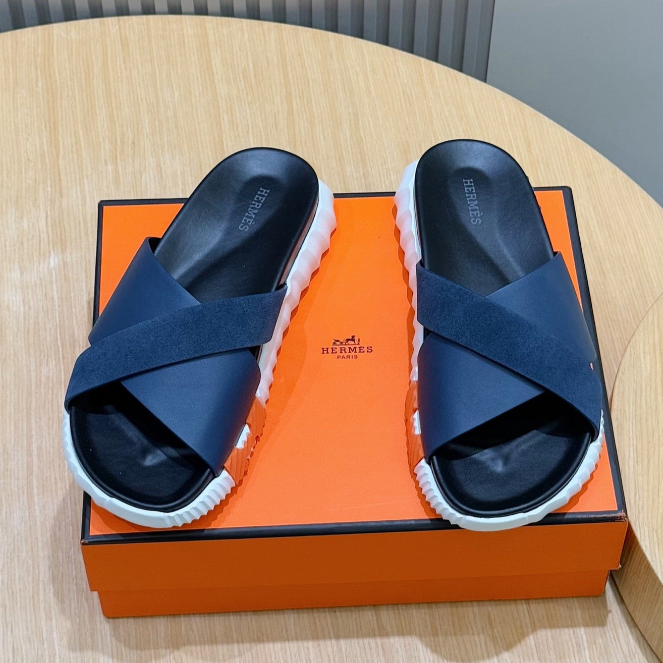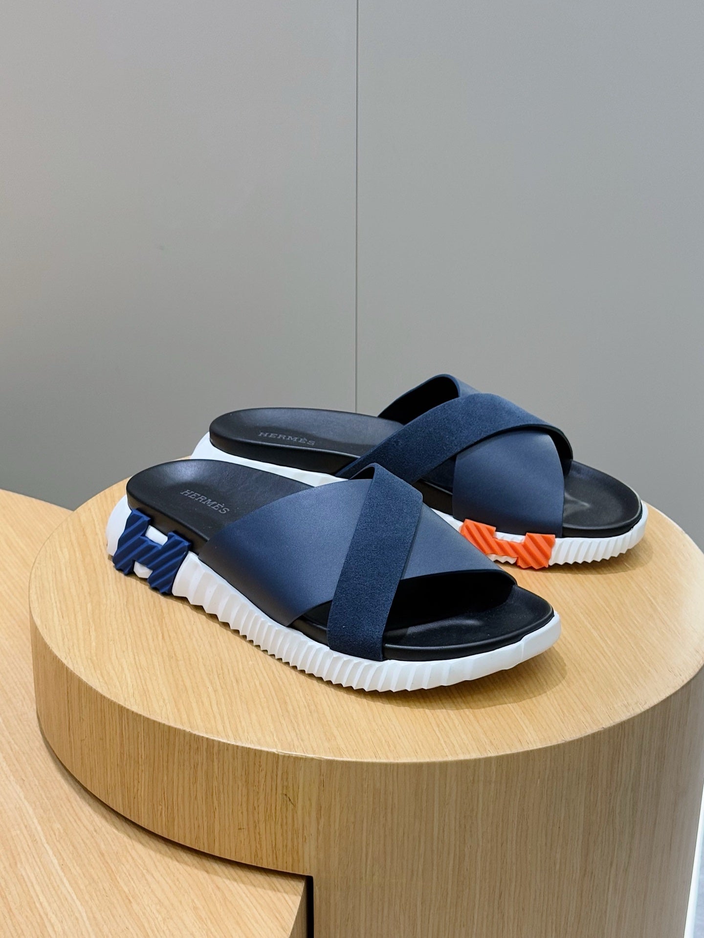 HM Men's Infra Slide Navy Blue Cowhide Suede 599997