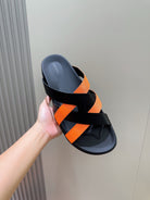 HM Men's Kazimir Slide Black Orange Calfskin 562774