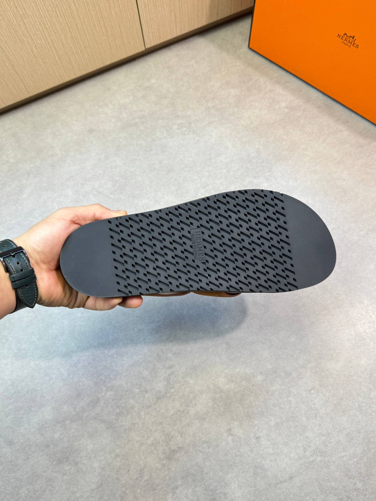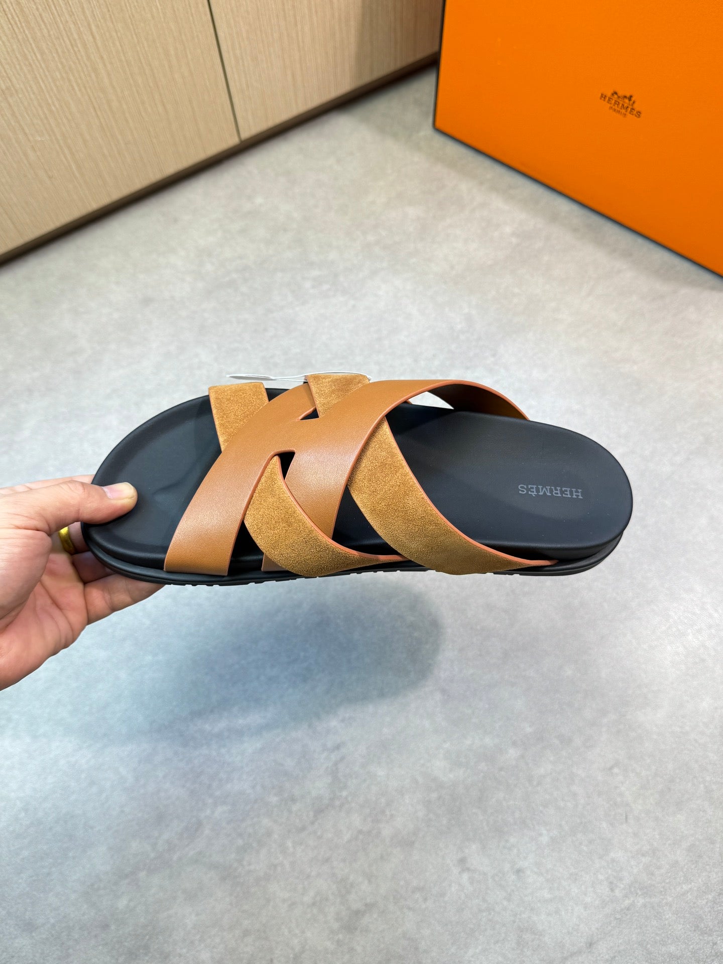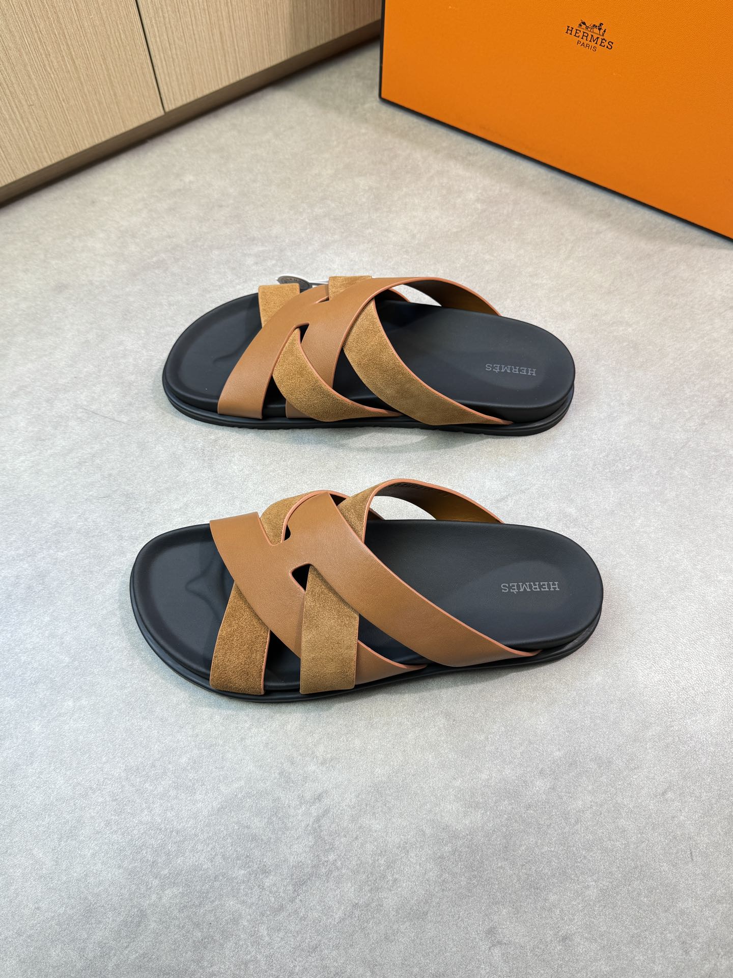 HM Men's Kazimir Slide Brown Calfskin Suede 603170