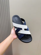 HM Men's Kazimir Slide Navy Blue White Calfskin 562773