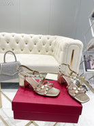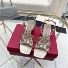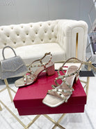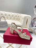 Rockstud 6cm Square Toe Rose Cannelle and Gold Leather Sandals