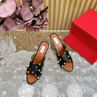 Rockstud Crisscross Espadrilles 80mm Sandal Wedges Black