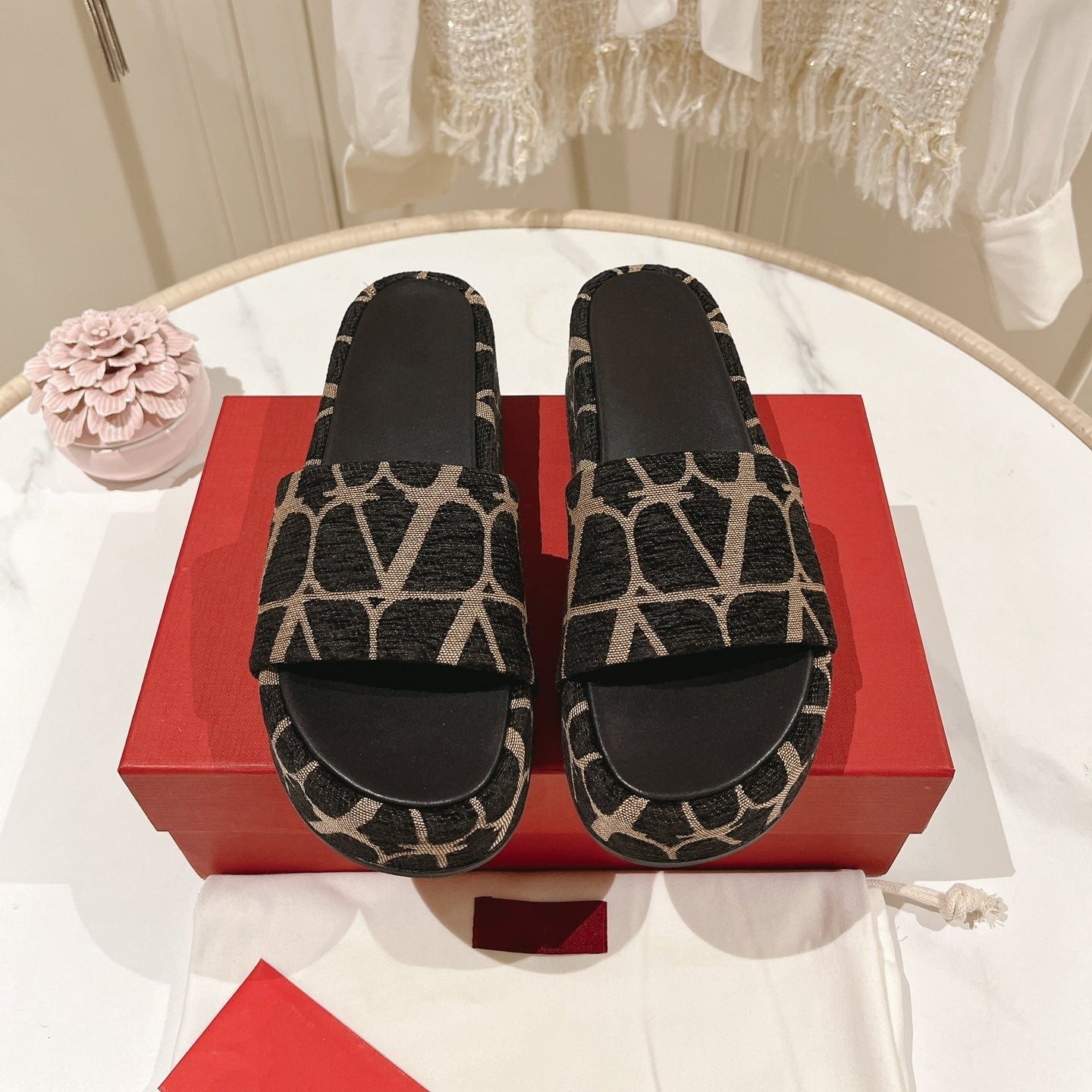 Toile Iconographe Slide Sandal 65mm Black Beige