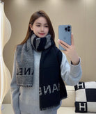CC Scarf 185 CM In Black Mix Grey Serrated Shape Cashmere 422861